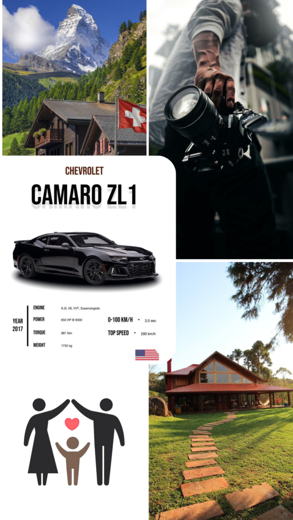 Quiero ser un joven exitoso , irme a vivir a Suiza siendo reconocido como uno de los mejores en la fotografía , tener un Camaro negro , tener una linda familia , ser un buen papá , apoyando en todo a mis hijos y dándoles mucha fuerza y ánimo cuando lo necesiten , quiero 3 hijos no importa si son niño o niña, pero si tengo una niña la quiero llamar María Eleiby y como pronombre decirle Maleiby y quiero vivir con mi familia en una finca donde pueda ser feliz vi ir tranquilo y tomar fotos de la naturaleza para así poder tener un museo de fotos y arte y poder ser reconocido como uno de los mejores fotografos